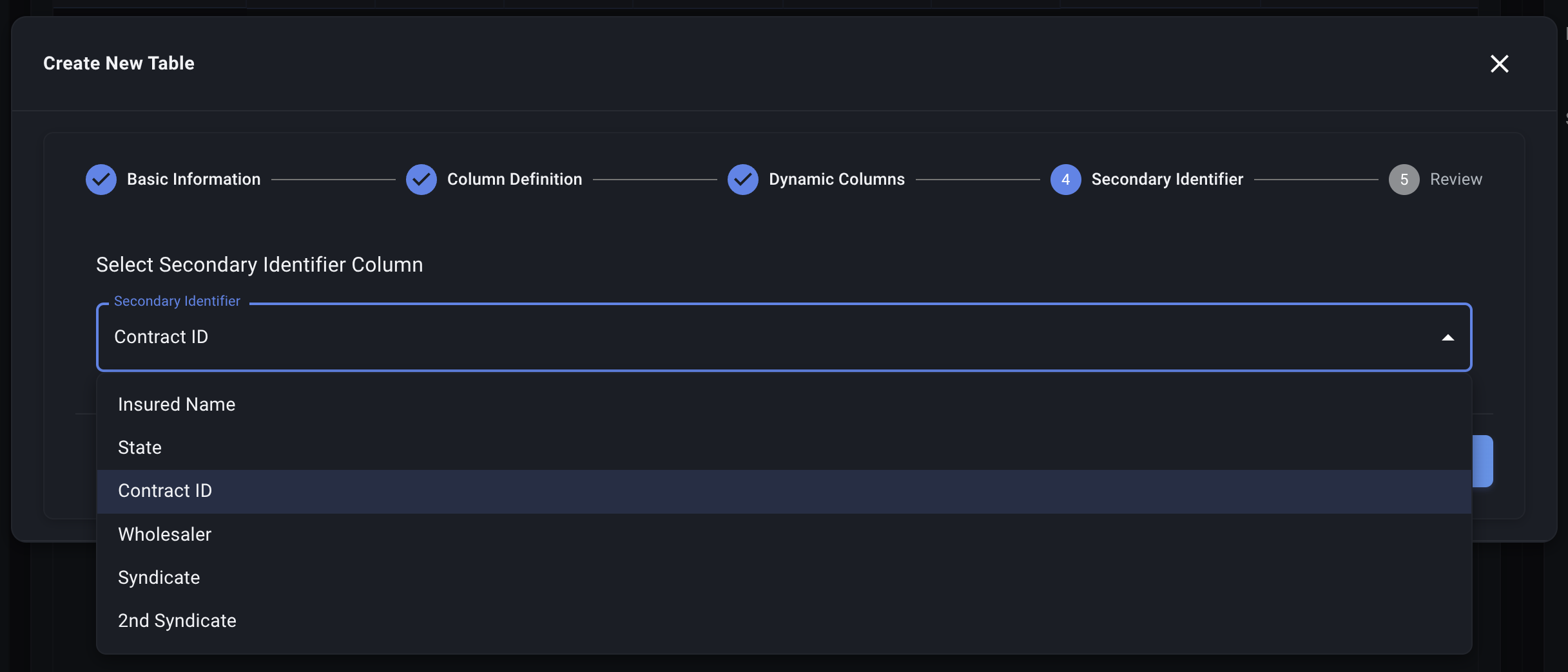 This step is simple but important. For each table you must select a secondary identifier. This is used by Decode to prepend to the identifier if the value for a given spreadsheet is too simple and may cause clashes with other data.